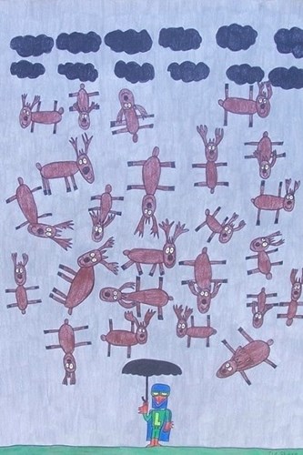 From there, Tim’s successes kept stacking up. He was invited to appear as a speaker at TEDx, the Broadway-developed theatre production of Laser Beak Man opened, and a short film about his story was shown at the Metropolitan Museum of Art in New York. He's spoken on autism to a wide variety of audiences, seen the Laser Beak Man show tour Australian theatres, delivered a best-selling biography, and even partnered with a major Australian sock manufacturer to launch a line of Laser Beak Man-branded socks and sleepwear at David Jones. You can grab a pair that's based on Tim's 'Raindeer' artwork (pictured below) here.